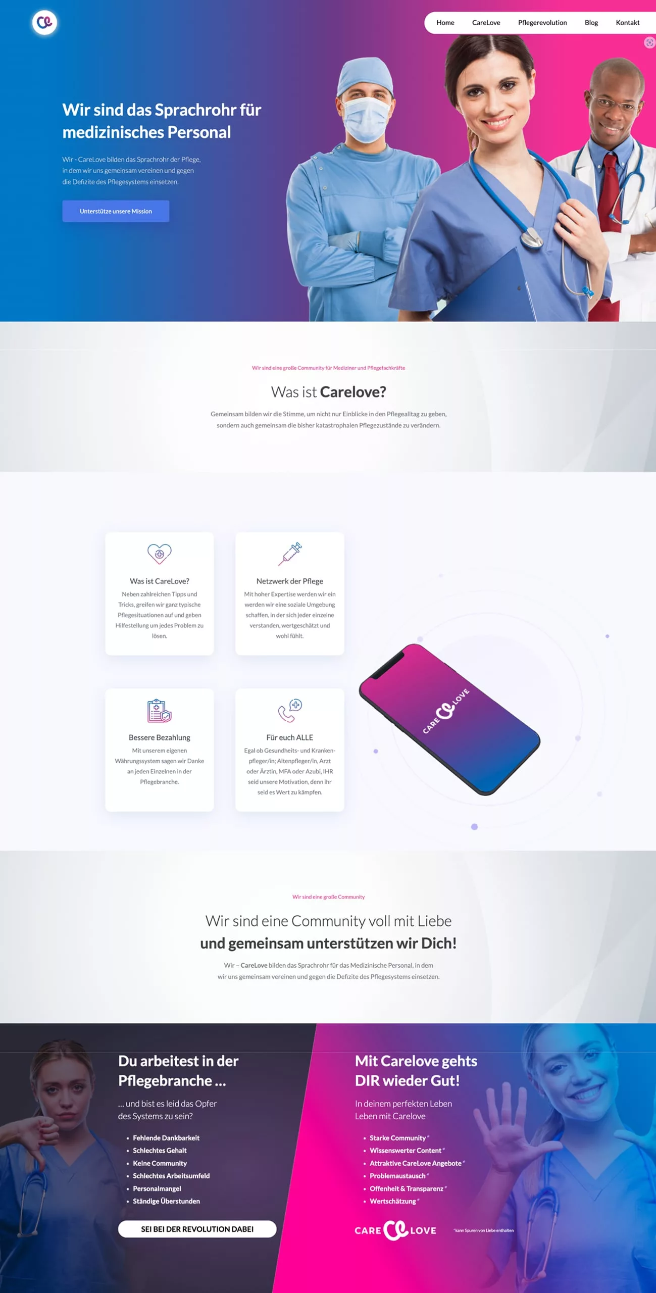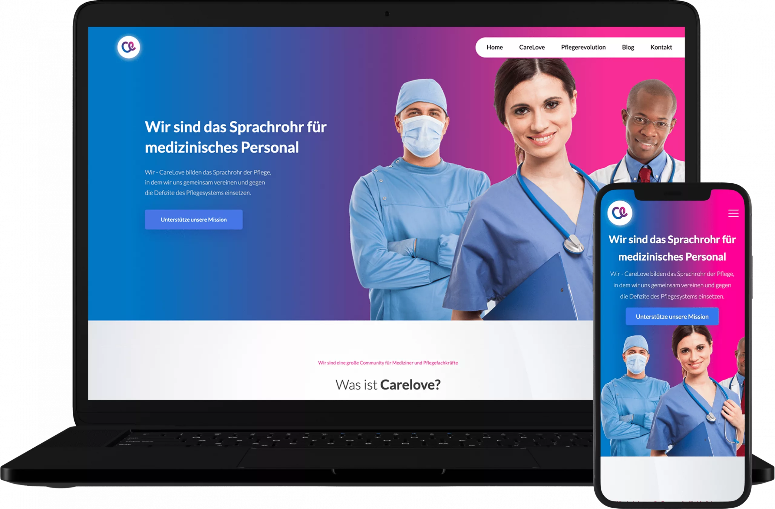 Webseite Entwicklung für Carelove - das Sprachrohr für medizinisches Personal