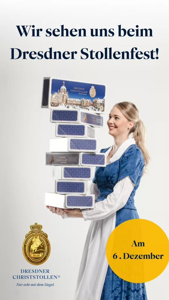 zum Dresdner Stollenfest auf dem StriezelmarktWerbeanzeigen für die weihnachtliche Gesamtkampagne