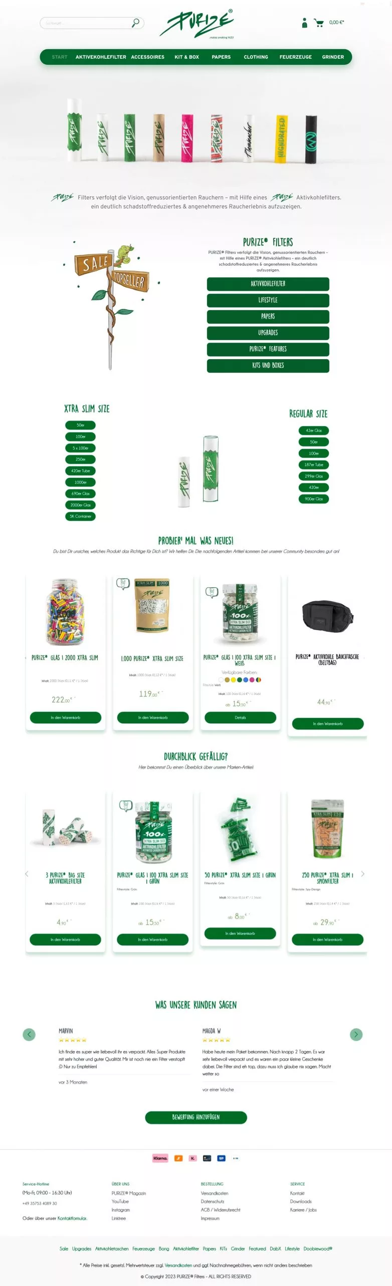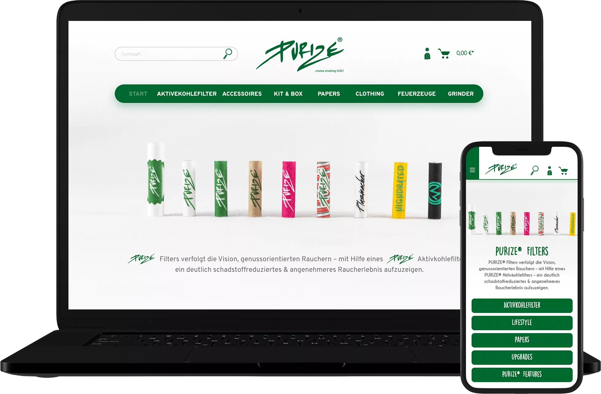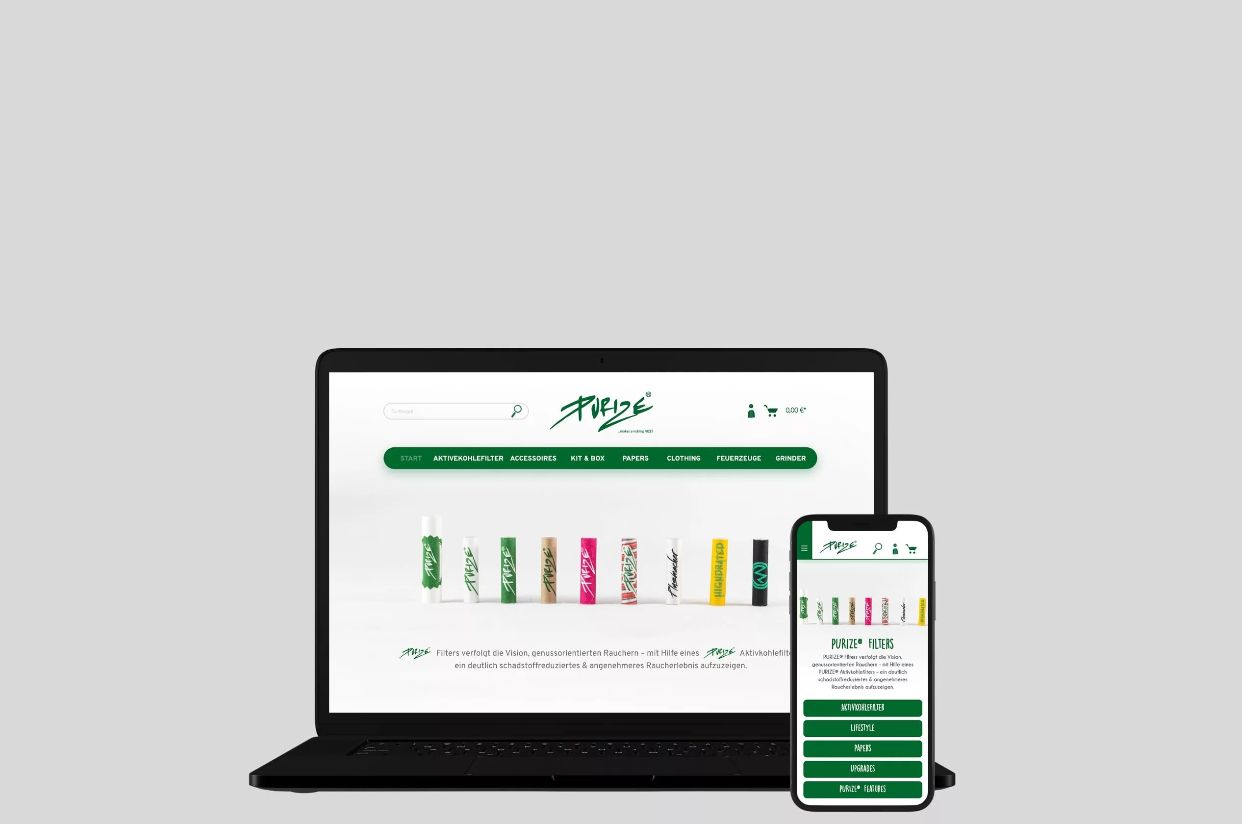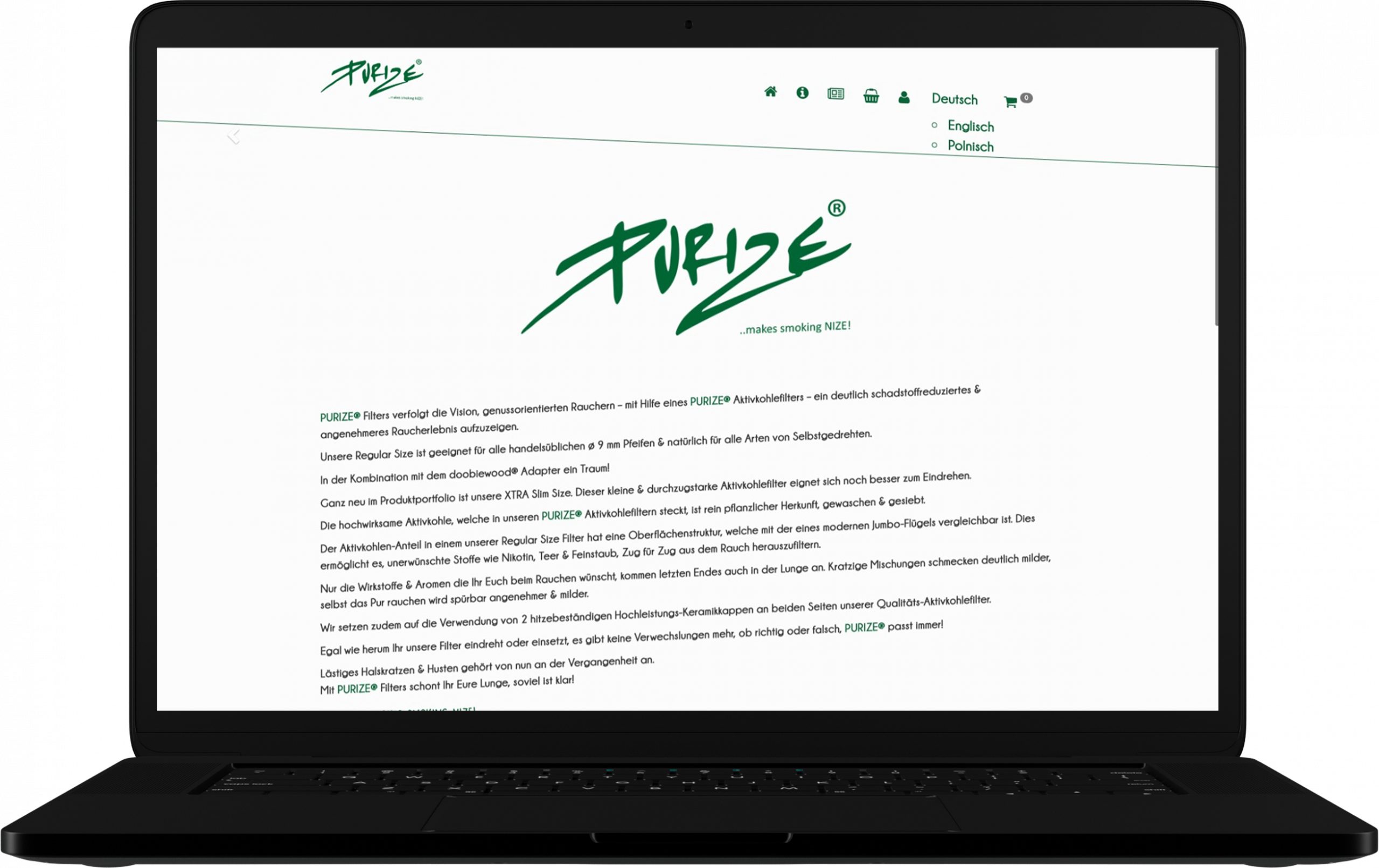 - Das gesamte Design des Onlineshops wurde für Purize-Filters gestaltet.
