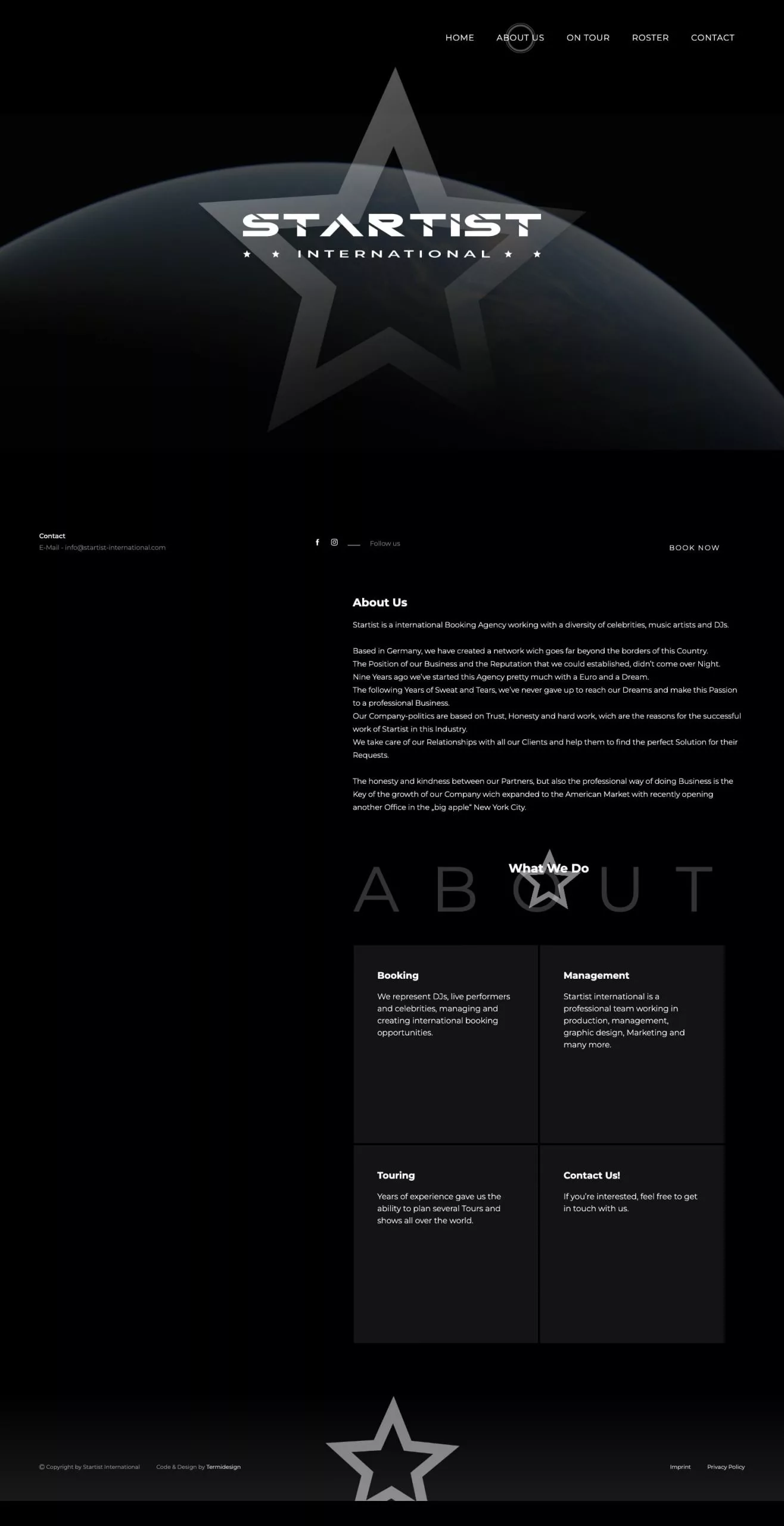 Webseite Entwicklung für ein US Artists Booking Unternehmen