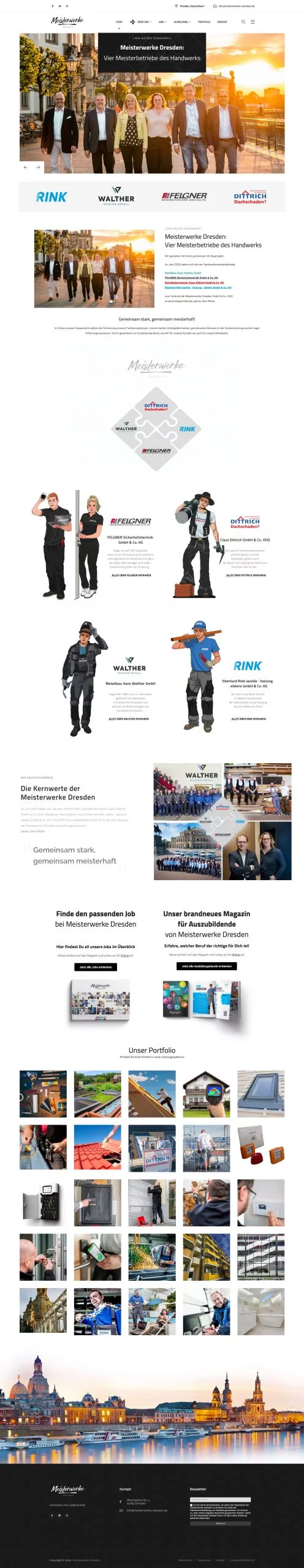 Die Website wurde als zentrale digitale Plattform für den Verbund der vier Meisterbetriebe konzipiert und umgesetzt. Ziel war es, die einzelnen Unternehmen unter einer starken gemeinsamen Marke zu vereinen und gleichzeitig ihre individuellen Kompetenzen sichtbar zu machen.