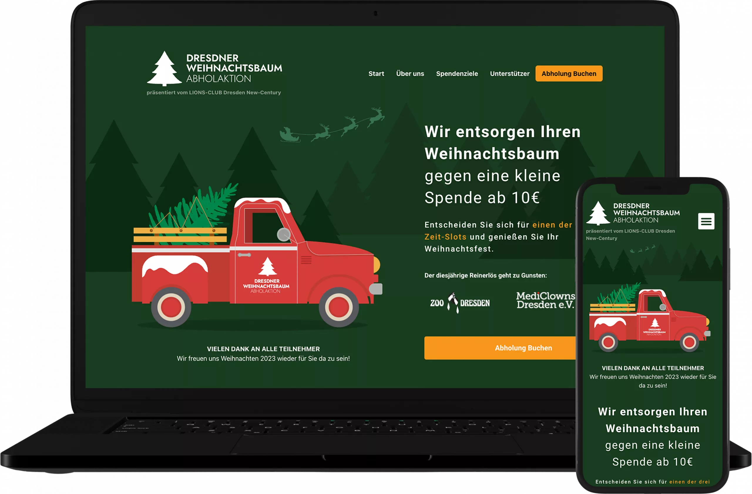 Deshalb wurde ein neues Anmeldeformular programmiert welches drei Zeitslots darstellt und eine Informationen an den Spendenverein sendet.Sowie eine Kopie der Anfrage an den jeweiligen Teilnehmer. All diese Mails haben das Dresdner-Weihnachtsbaum Branding erhalten.