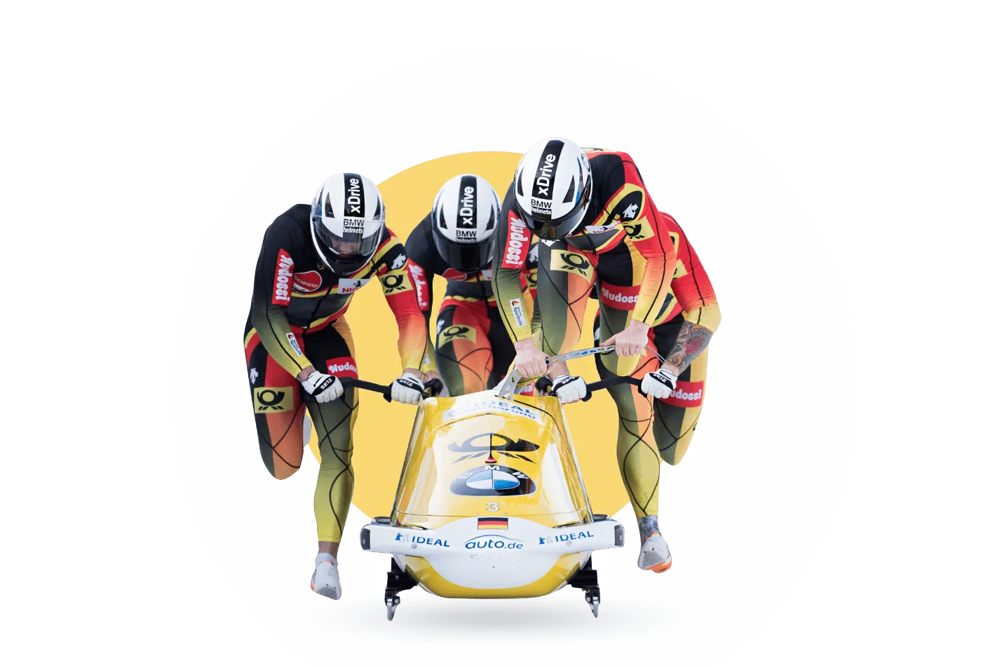 - Die Webseite hat verschiedene Motive des Bobteams dargestellt. Das Bobteam in der Mitte wird per Animation angezeigt.