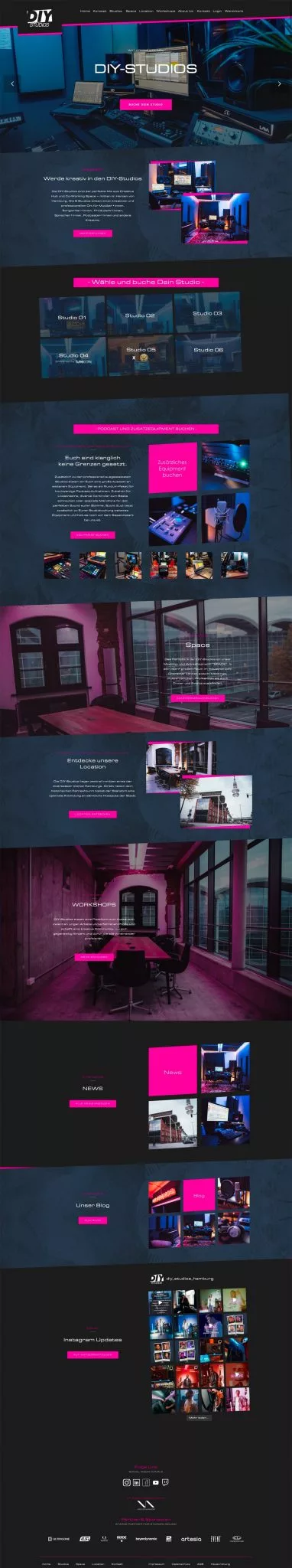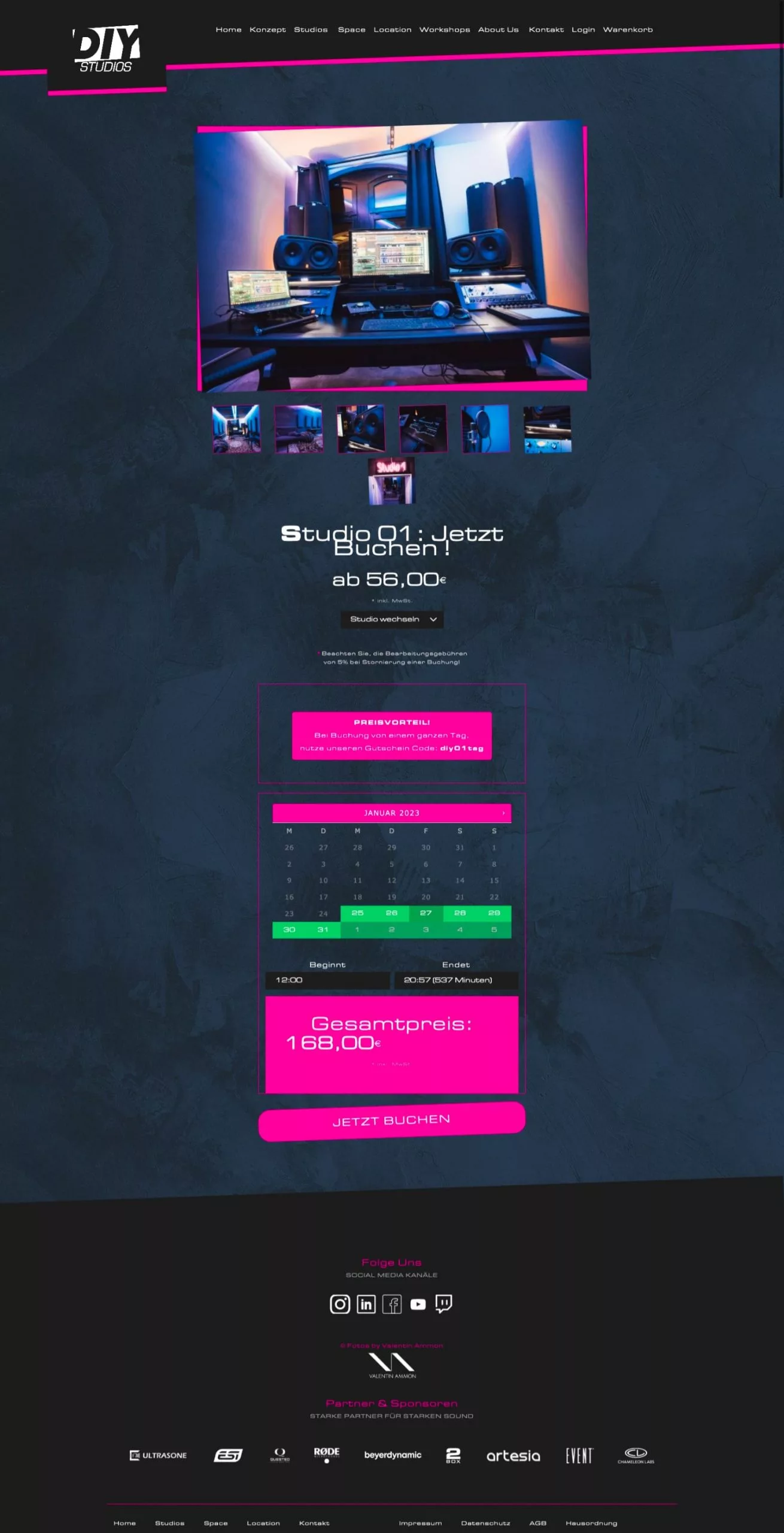 Alle Studios können per Terminkalender gebucht werden im Hintergrund arbeitet ein Onlineshop.